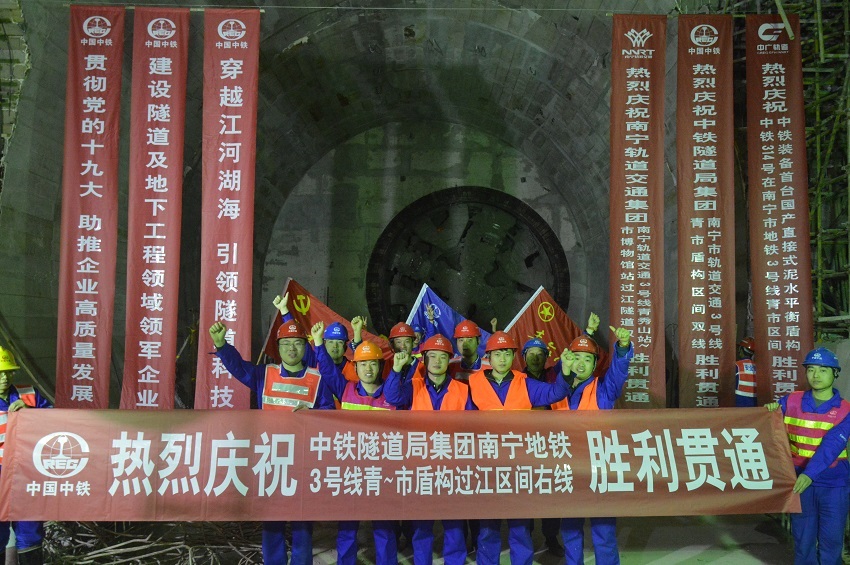 ▲青秀山站至市博物館站盾構過江右線隧道貫通